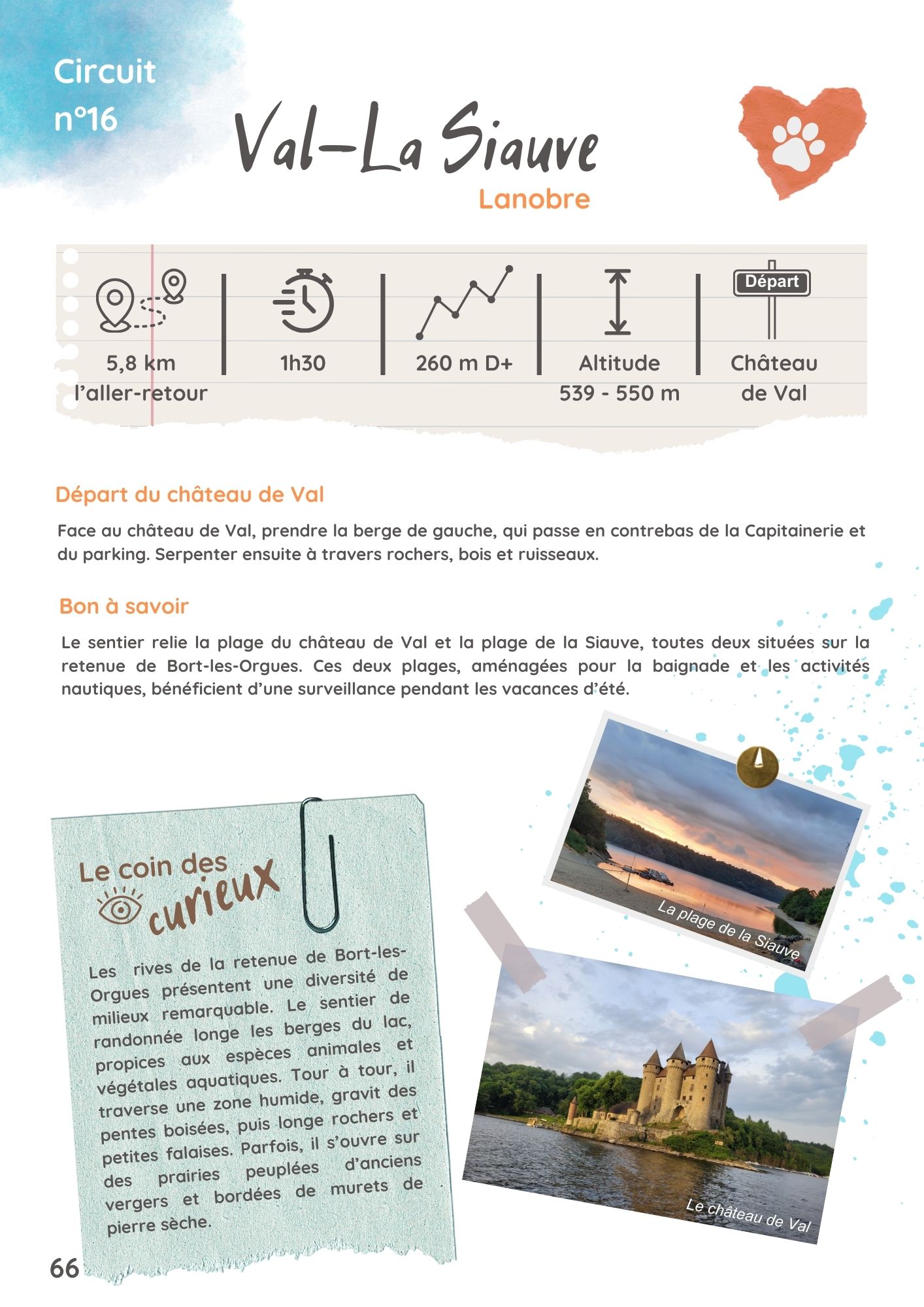 Cette randonnée relie les deux plages de Val et de la Siauve. Aménagé sur tout son parcours, le sentier permet une découverte paysagère, historique et botanique des rives de la retenue de la Dordogne.